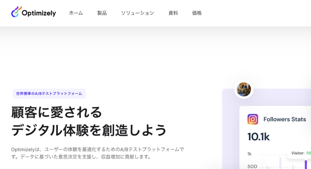 ABテストツールのパイオニアであり、現在はエンタープライズ向けの「デジタルエクスペリエンスプラットフォーム(DXP)」のリーディングカンパニーです。OptimizelyにとってABテスト(Web Experimentation)は、CMSやEコマース機能などを含む広範な製品群の一部であり、顧客体験全体を最適化するための実験エンジンとして位置づけられています。AIによる高度なパーソナライゼーションや、サーバーサイドテスト(Full Stack)など、極めて強力な機能を備えています。