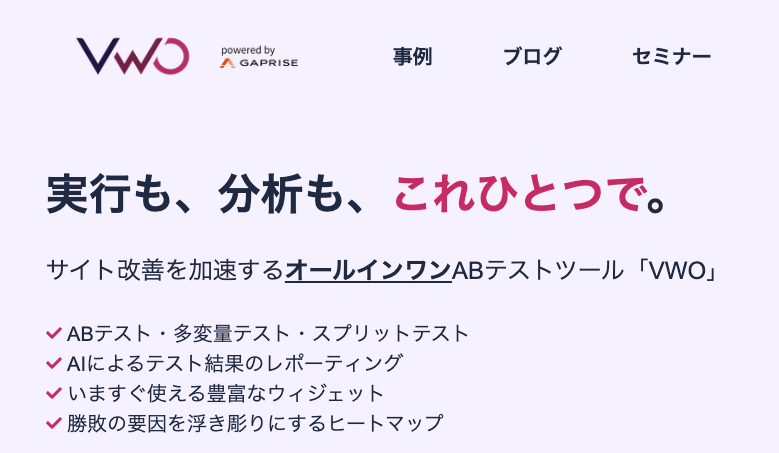 公式サイト:https://vwo.gaprise.jp/index.html