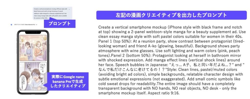 LP用に制作した漫画のコマを切り出して、Web広告のバナーや動画広告の素材として活用することができます。