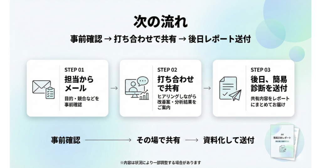 お申し込みありがとうございます|無料診断のご案内 お申し込み(リンククリック)ありがとうございます。 無料診断の受付を完了しました。担当より3営業日以内にメールでご連絡します。※この時点でURL共有は不要です。※@tryhatch.co.jp からご連絡します(迷惑メールもご確認ください。 任意で事前に整理いただけるとスムーズな項目 目的(予約/問い合わせ/採用 など) 業種・ターゲット 競合サイト(3URLまで) 現状のご課題(任意) お待ちの間にぜひよろしければ下記資料もご覧ください。 お役立ち資料・ホワイトペーパー|スワイプ型LP事例・LP改善ガイド一覧 お役立ち資料・ホワイトペーパー スワイプ型LPの基礎から実践、ツールまで|マーケティング活動に役立つ資料を無料で公開しています。 SwipeKit 関連資料…