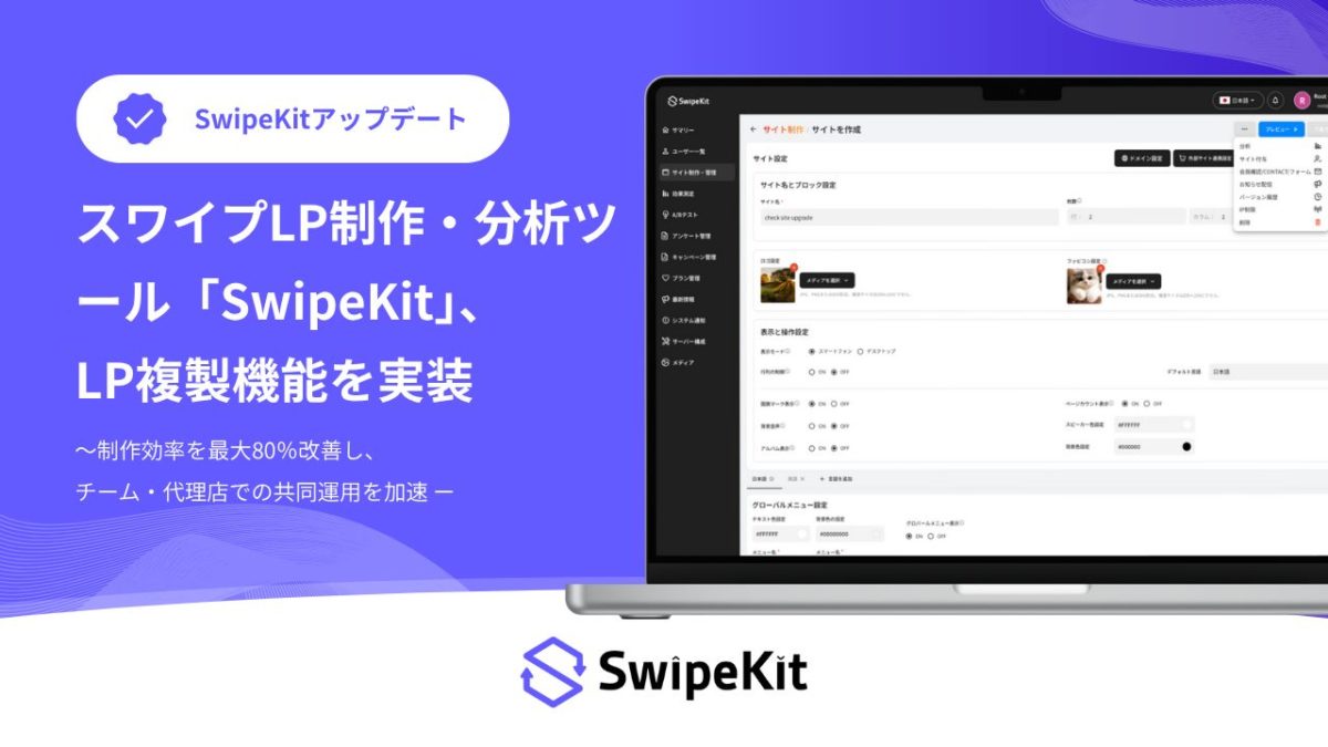 株式会社ベクトル(本社:東京都港区、代表取締役会長兼社長CEO:西江 肇司、東証プライム:6058)の子会社で、SaaS事業及びデジタルマーケティング支援事業を展開する株式会社トライハッチ(東京都新宿区、代表取締役社長、武藤 尭行、以下「当社」)は、スワイプ操作で直感的にLP(ランディングページ)を制作・分析できるツール「SwipeKit」において、制作済みのスワイプLPをワンクリックで複製できる新機能「LP複製機能」を実装いたしました。