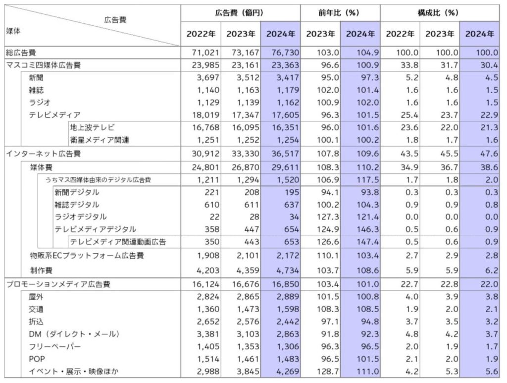 引用:2024年 日本の広告費 日本の総広告費の推移